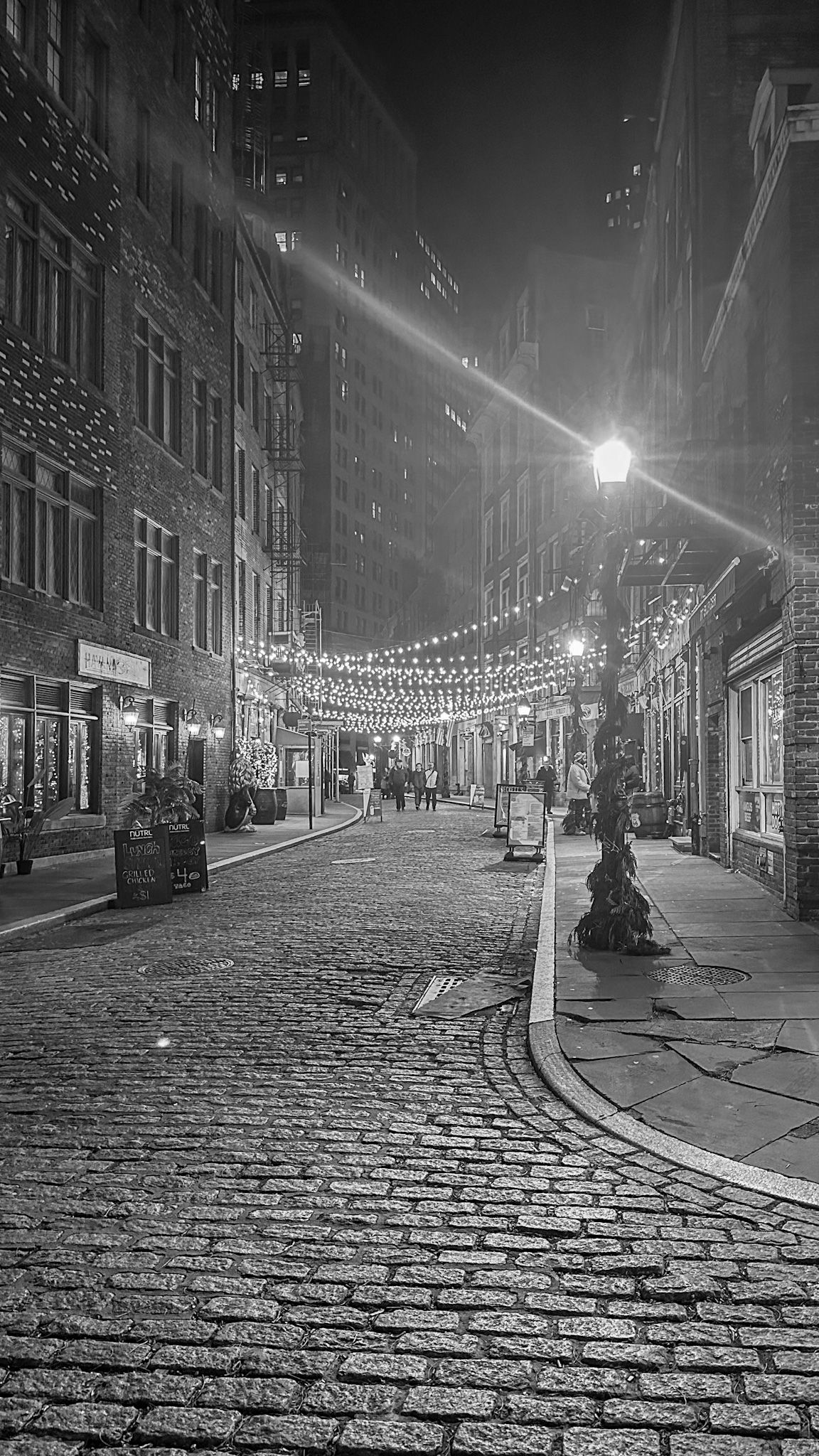 Stone Street — The most famous block in the neighborhood, and it earns it. This narrow, cobblestoned pedestrian lane between Hanover Square and Coenties Alley is lined with restaurants that spill tables outside the moment temperatures allow it. In summer, it's the closest thing Manhattan has to a European alley. In winter, the string lights and stone facades still pull you in.