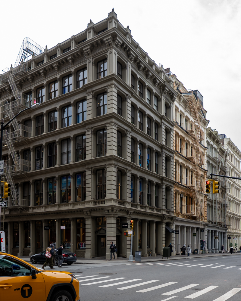 Wooster Street — Quieter than Greene, with strong gallery presence and some of the neighborhood's most coveted loft buildings. Walking Wooster at dusk is a near-spiritual experience if you care about architecture.